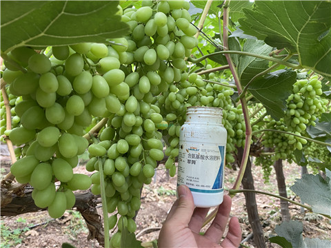 四川西昌付大哥種植的葡萄(克倫生)使用翠姆含氨基酸套餐水溶肥后,樹勢長勢健壯,根系發(fā)達,之前使用一些劣質(zhì)肥料導(dǎo)致的土壤及根系問題都及時得到改善,繼續(xù)使用一段時間后,葉片肥厚濃綠,掛果量大,果實粒粒飽滿,外觀品質(zhì)佳,產(chǎn)量高。