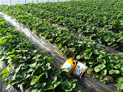 花期果實(shí)成熟期:主要抑制灰霉病、白粉病;蜜蜂輔助授粉,減少畸形果產(chǎn)生;做好防凍措施,尤其是靠近棚門的位置, 以免凍害影響。這個時期32.5%苯甲嘧菌酯懸浮劑1500-2000倍, 7~15天1次2、5%阿維菌素乳油2000倍,葉面噴施, 防治蚜蟲、紅蜘蛛等。用藥時,將蜜蜂箱移出大棚或移到未施藥棚室內(nèi)。這個時期主要是使用膨果肥,采果肥,復(fù)壯肥,為持續(xù)產(chǎn)出提供能量。