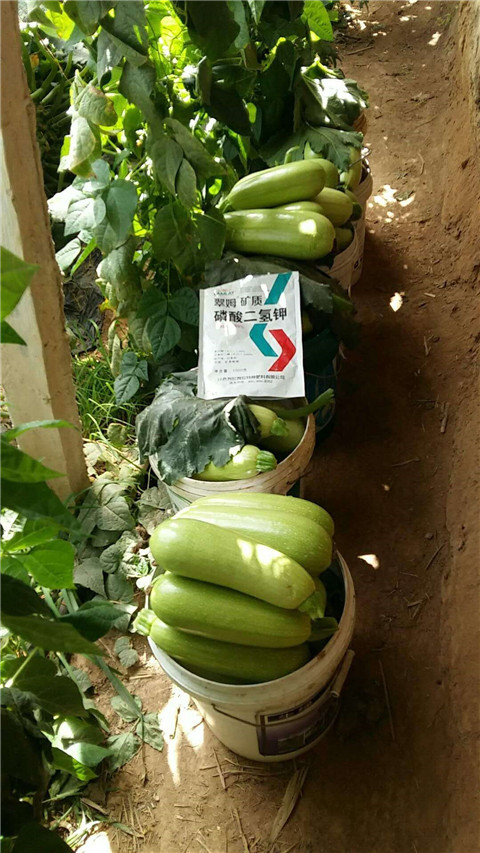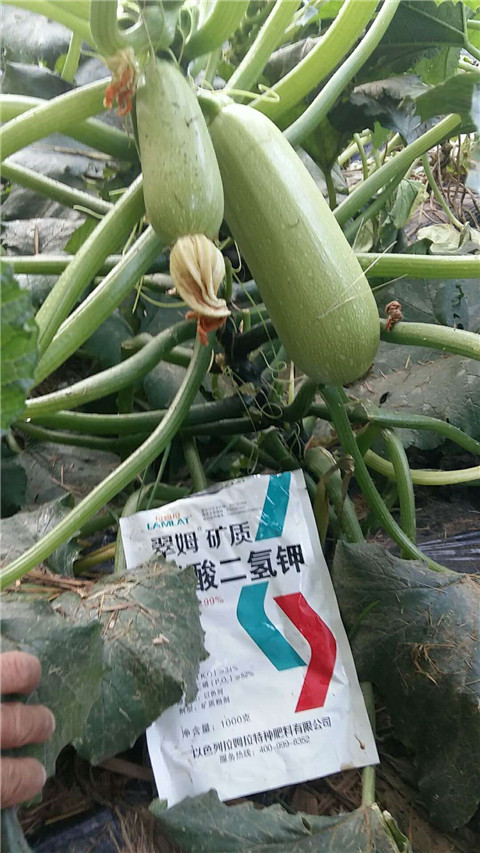 ? ? ? 例如以色列拉姆拉對于磷酸二氫鉀的使用研究較為深入,其翠姆礦質(zhì)磷酸二氫鉀與殺菌劑的復(fù)配比較好,而且起到更多增效的效果。翠姆礦質(zhì)磷酸二氫鉀與殺菌劑氟硅唑的復(fù)配,不僅起到殺菌,補(bǔ)充磷鉀營養(yǎng),還有控旺的效果,通過大量實(shí)驗(yàn)反饋,西葫蘆上色難上色慢的問題,這個(gè)配比方案就能很好的解決,可以做到3~4天讓西葫蘆的瓜色由發(fā)白到轉(zhuǎn)綠。